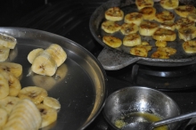 ತುಂಡು ಮಾಡಿದ ಬಾಳೆಹಣ್ಣನ್ನು ಬಿಸಿಯಾಗಿರುವ ಕಾವಲಿಯ ಮೇಳೆ ಇಟ್ಟು, ತುಪ್ಪ ಸವರಿ ‍ಕೆಂಪಗೆ ಕಾಯಿಸಿ